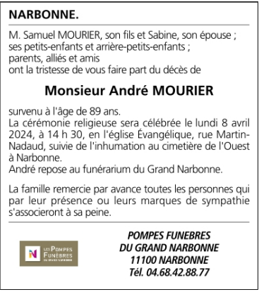 Décédé à Narbonne (11100, France) le jeudi 4 avril 2024 à l'âge de 89 ans