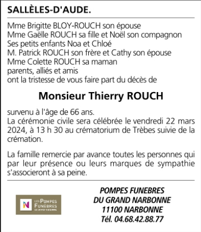 Décédé à Narbonne (11100, France) le dimanche 17 mars 2024 à l'âge de 66 ans